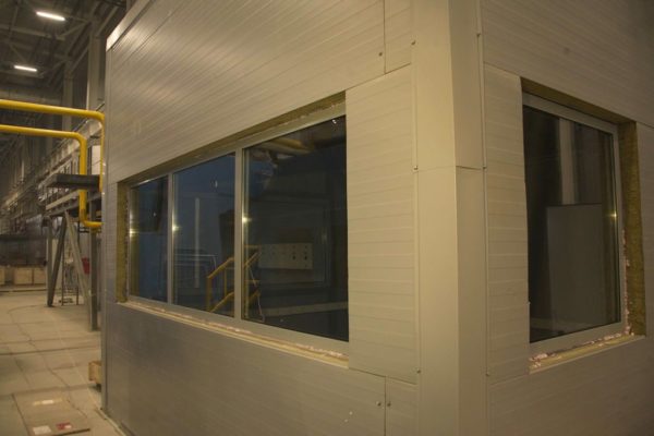 Противопожарные перегородки с оконным блоком могут изготавливаться как в полностью остекленном варианте, так и в частично остекленном исполнении. Основное предназначение таких конструкций — это разделение общего помещения на несколько отдельных рабочих зон. При этом преследуется несколько целей: